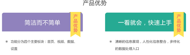 功能分為四個主要板塊:首頁、視頻、數據、設置