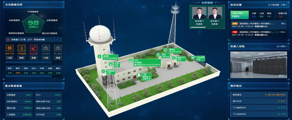 運行管理--系統支持多用戶交叉管理 支持海康威視、大華視頻集成接入統一監控; 支持微信監控、電子地圖、運行日歷等功能,從多角度對 系統進行統一管理,數據高度可視化; 支持一鍵遠程操作設備。 |